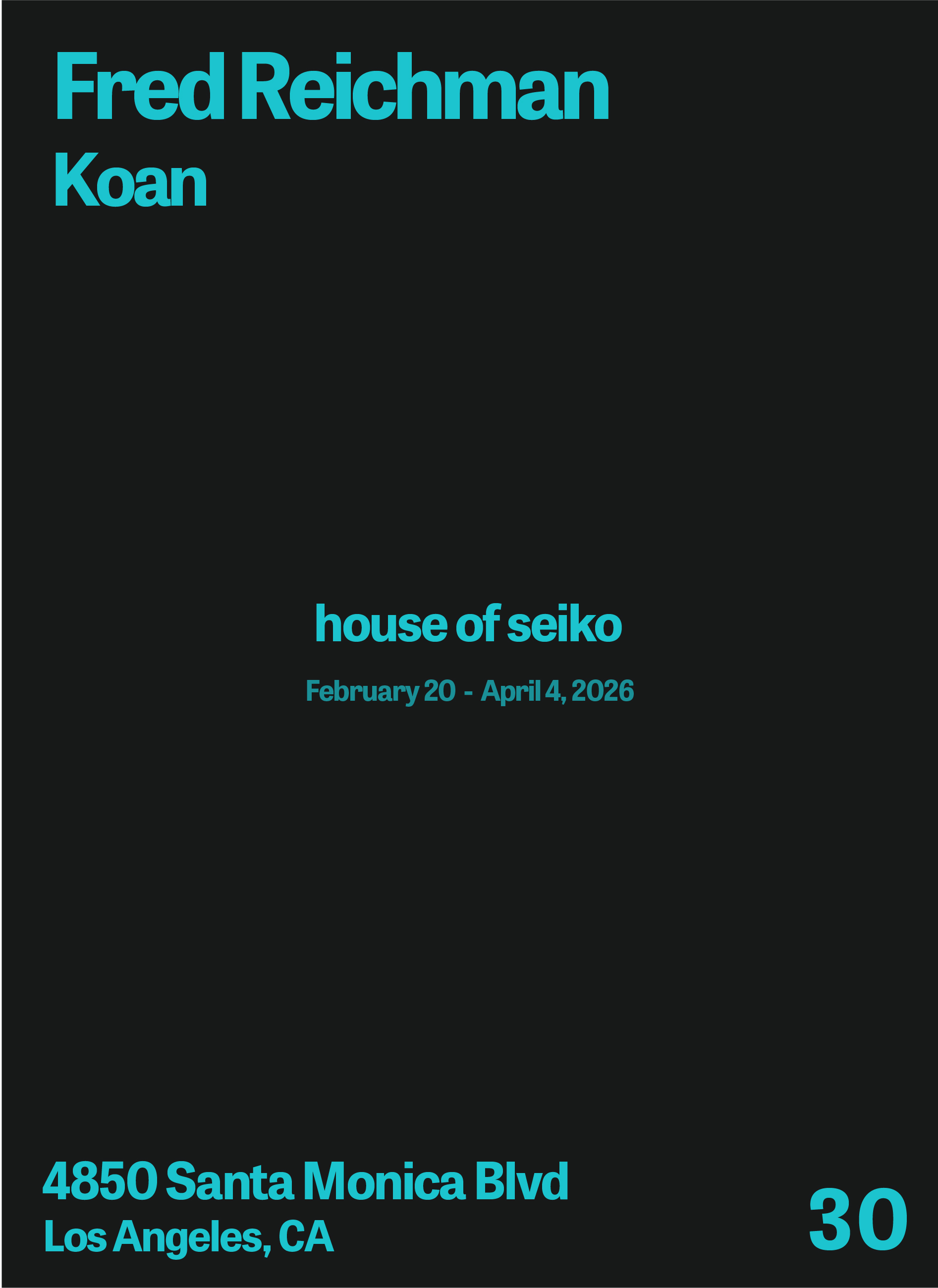 House of Seiko is pleased to present Koan, a twenty-year survey of artwork by the historical Northern California painter Fred Reichman. Influenced by Fred’s devotion to Buddhism through his time spent with Shunryu Suzuki Roshi, the namesake of the exhibition, Koan refers to a paradox meditated upon to abandon ultimate dependence on reason and gain sudden intuitive enlightenment; an ethos held closely by Fred and many of his colleagues in the San Francisco Bay Area during the post-war renaissance period.