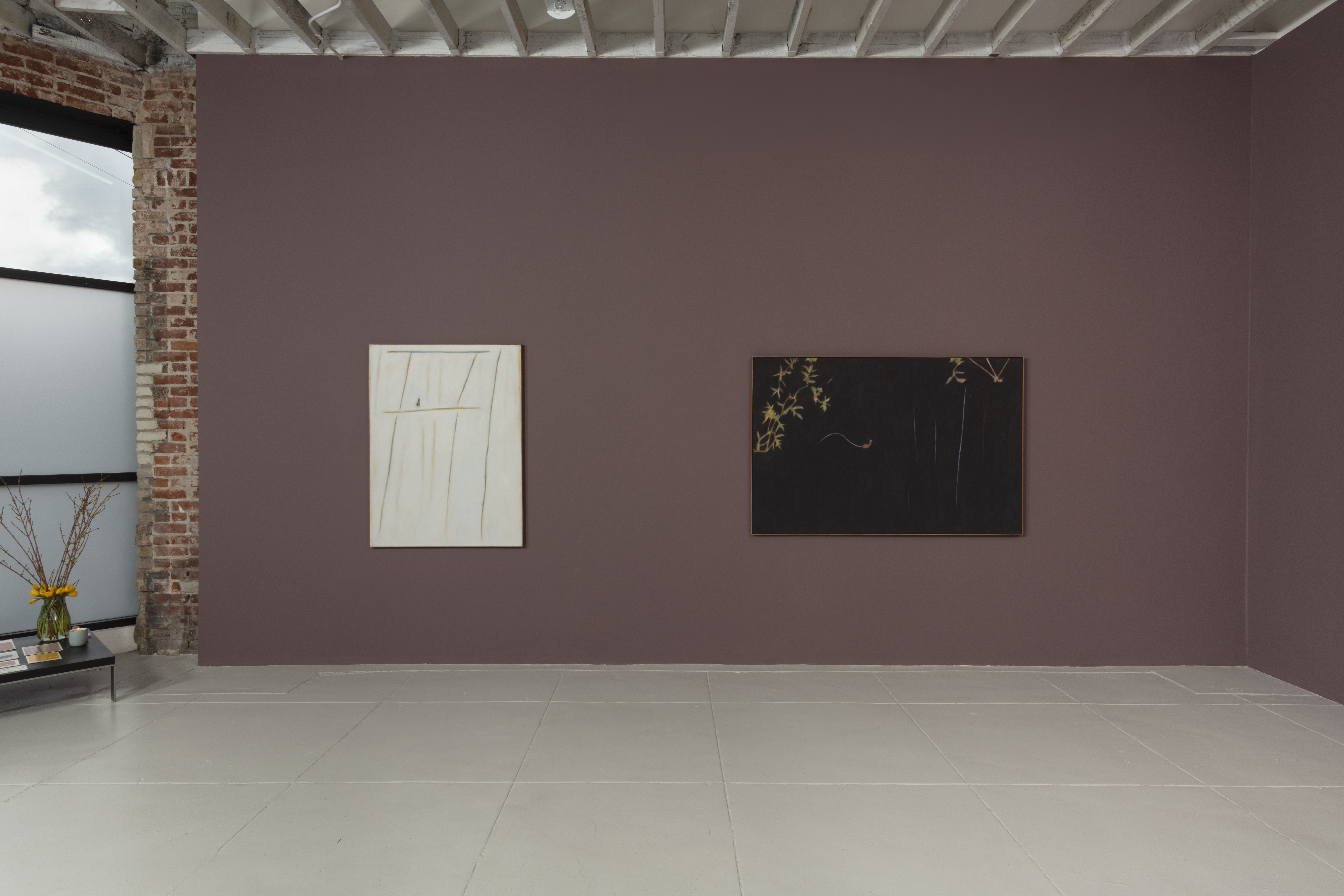 At times, the subject is defined by what has just passed through the frame: a broken picket on a fence disturbed by a startled deer, or a single bird perched on new grass marking the arrival of spring. In other works, Reichman’s presence appears indirectly through depictions of his studio table, where brushes, jars, and an easel are arranged with the same attentiveness given to landscape. These quiet interiors function as sites of memory and perception, folding the external world back into a meditative space shaped by patience, restraint, and care.